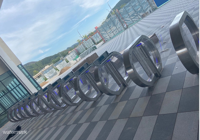 此次水上樂園入口處采用鐵軍智能生產的蘋果速通門,此款速通門的外觀比較細長,機芯結構小,采用離合器和編碼器配合使用,門擺基本是有機玻璃或鋼化玻璃,從外觀看,制作工藝和整體外形都顯得非常高端、大氣。