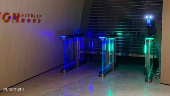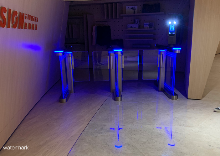春筍大廈健身房此次選用的是由深圳市鐵軍智能科技有限公司出品的高端定制炫彩速通門。此款產品非常的高端,大氣,有檔次。