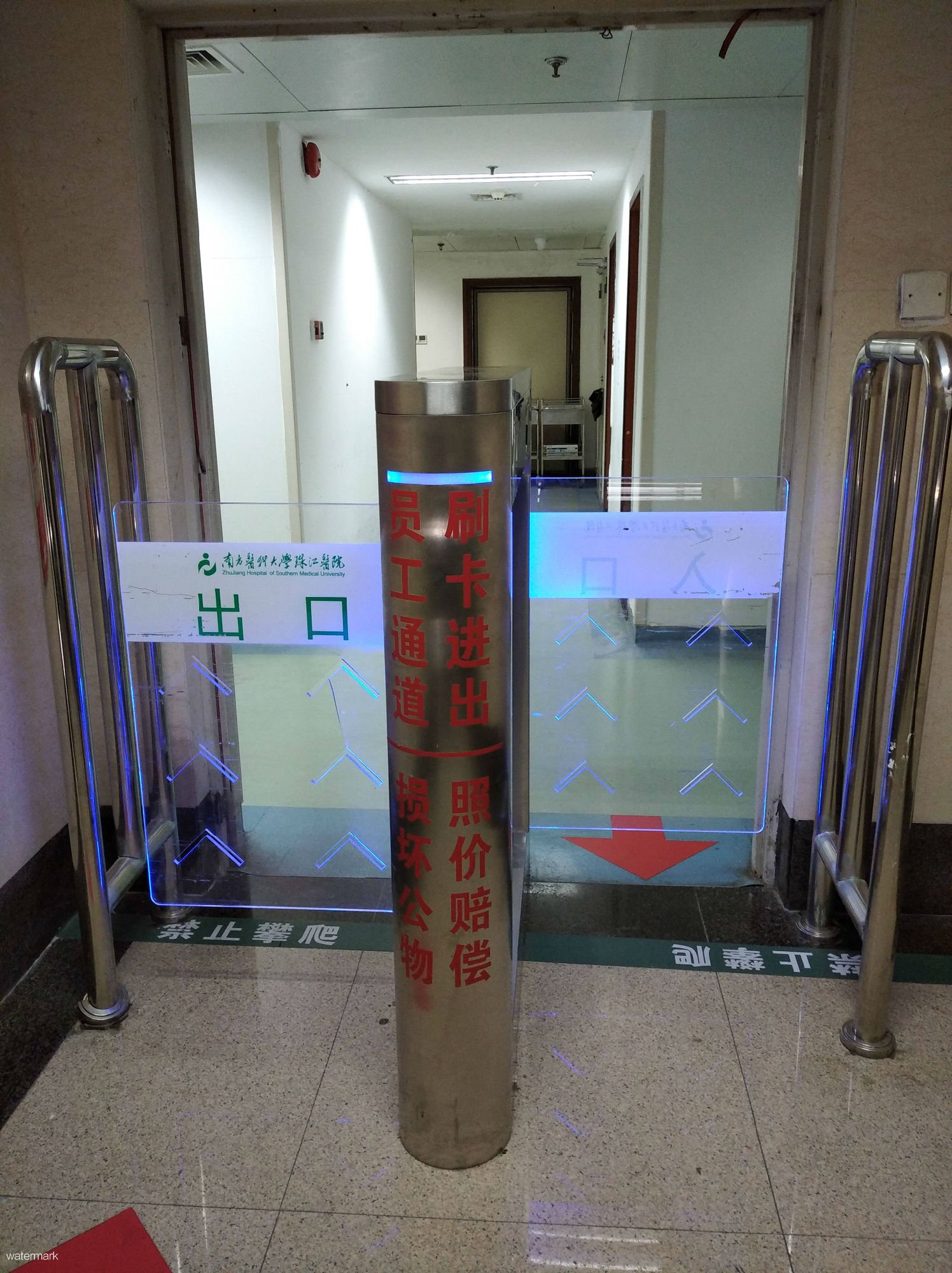 南方醫科大學珠江醫院規范院部員工通道管理制度,本次使用了深圳市鐵軍智能科技有限公司的小擺閘作為院部員工通道的管理設備。