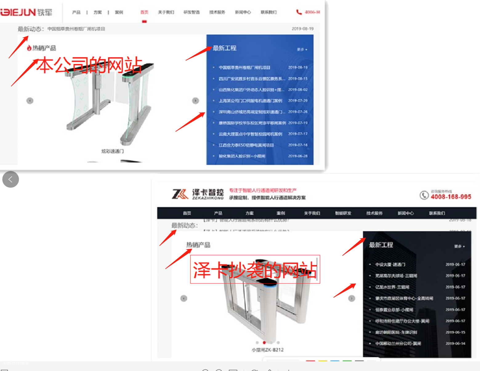 近期,我司運營人員發現新網站的版面、結構、標語、內容、圖片等被深圳市澤卡智控科技有限公司(網址為http://www.sz-zeka.com) 非法抄襲、盜用、仿冒、剽竊,這種非常惡劣的行為嚴重侵犯了我司網站、產品及解決方案等相關技術資料的著作權和所有權,對我司的信譽及客戶的利益造成了侵害。