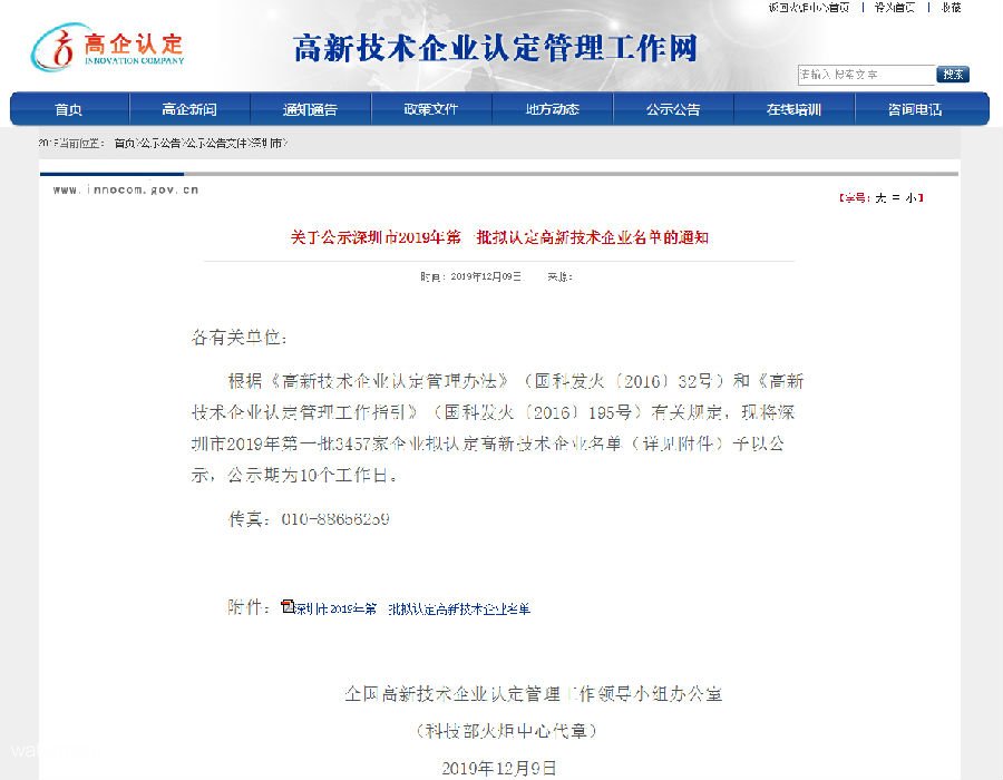 2019年12月9日,高新技術企業認證工作網公示了,深圳市2019年第一批擬認定高新技術企業名單,深圳市鐵軍智能科技有限公司就是其中一家,這標志著公司的發展又一個新的里程碑!!
